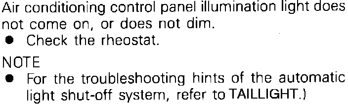 Air Conditioning Control Panel Illumination Lamp Troubleshooting: