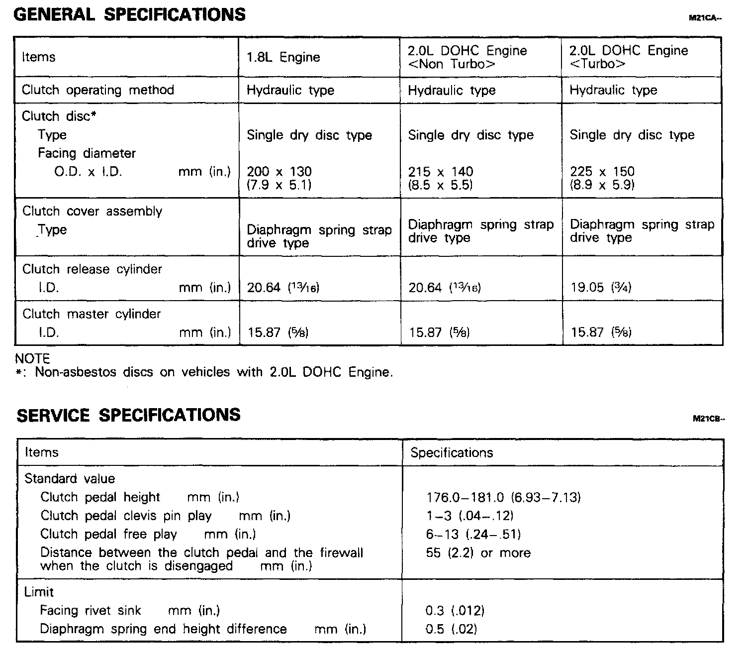 W5M33 5-spd M/T, Clutch Dimensions & Standard Value/Limits: