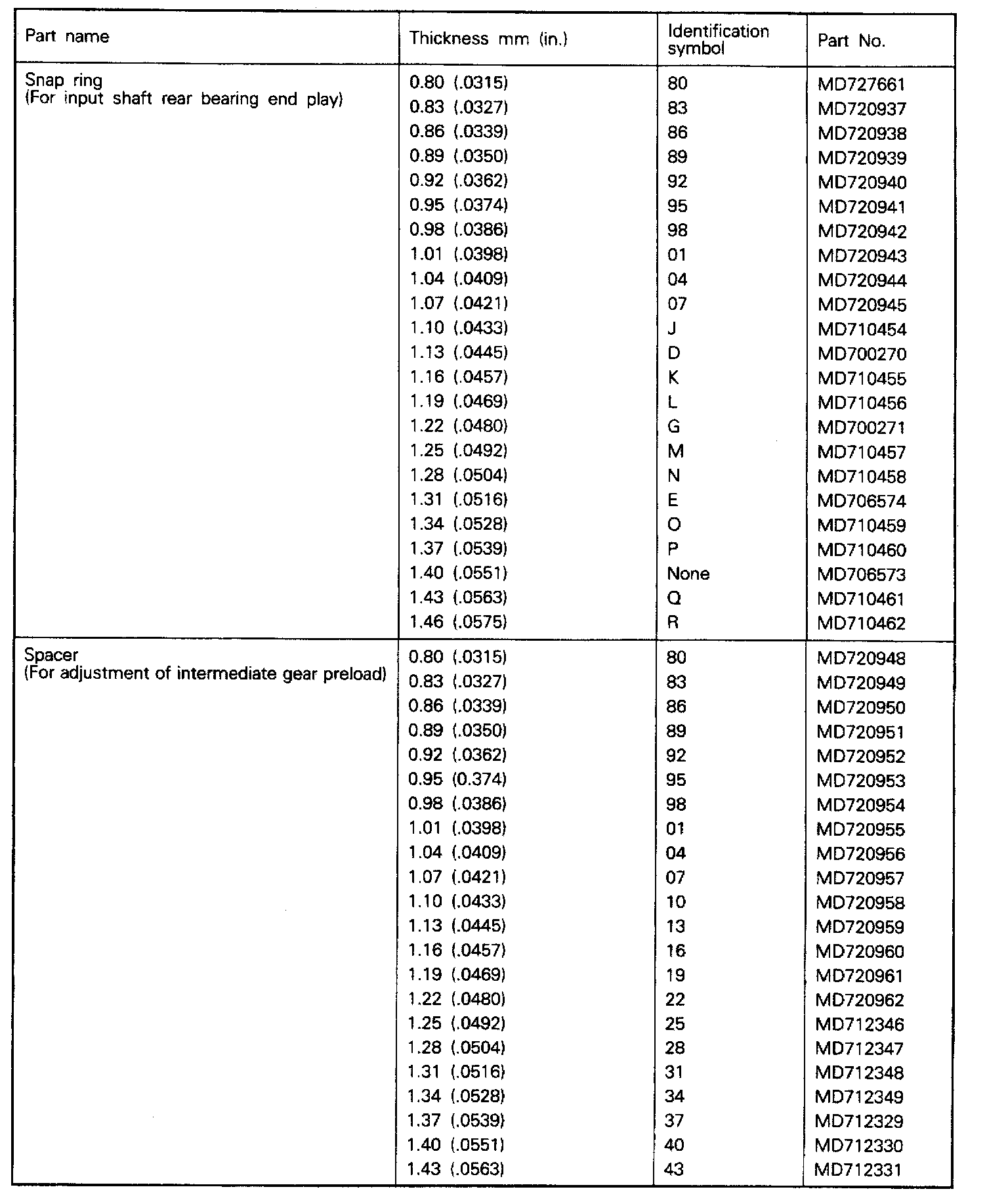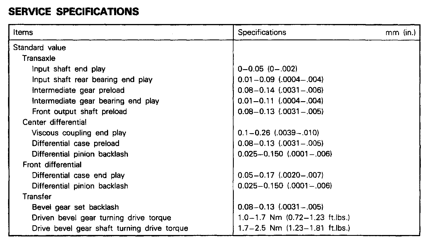 W5M33 5-spd M/T, Input Shaft Bearing End Play & Intermediate Gear Preload: