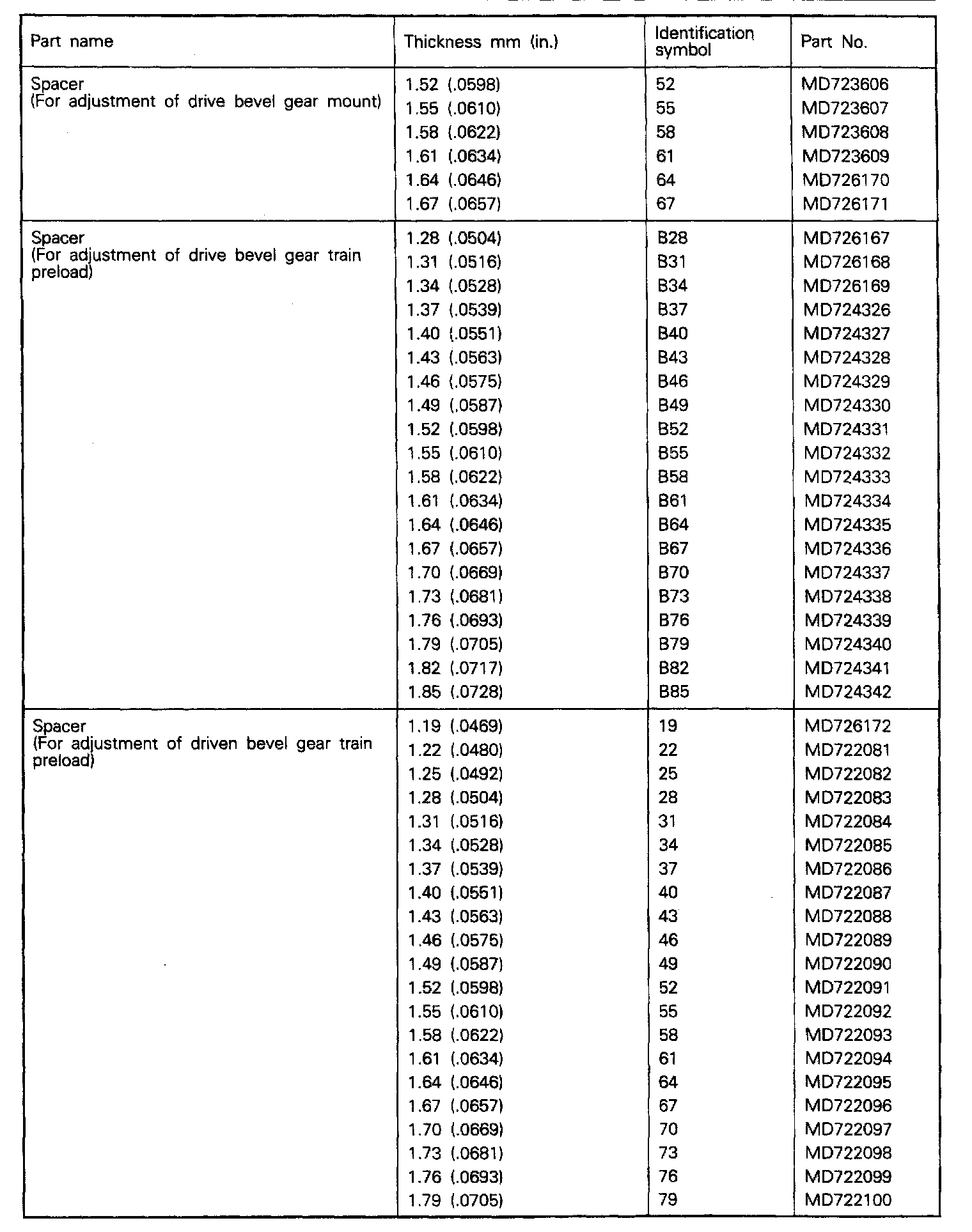 W5M33 5-spd M/T, Drive Bevel Gear Mount / Train Preload: