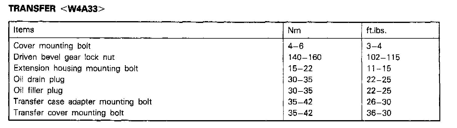 W5M33 5-spd M/T, Transfer Case Torque: