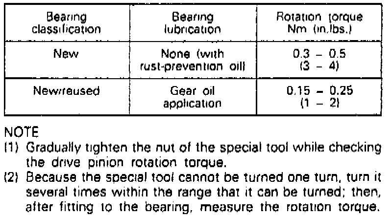 4. Adjust drive pinion preload as follows:
