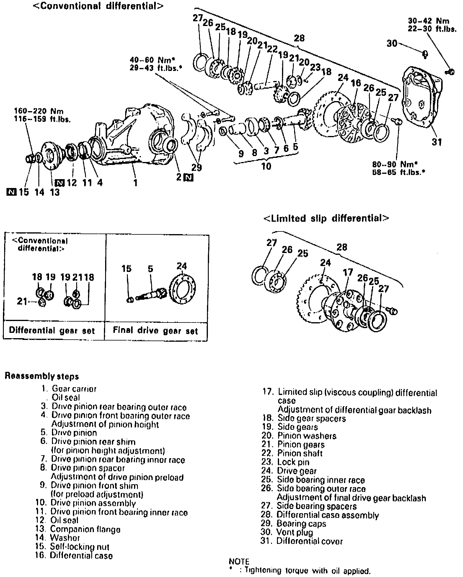 5. On models with conventional differential, adjust differential gear backlash as follows: