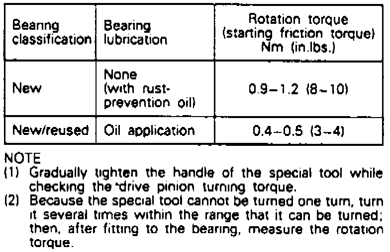 c. Measure drive pinion turning torque without oil seal installed.