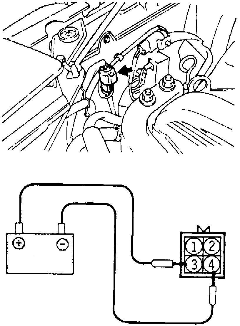 2. Apply battery positive voltage to terminal 3 and battery ground to terminal4, Fig. 10 and 11. Motor should operate smoothly.