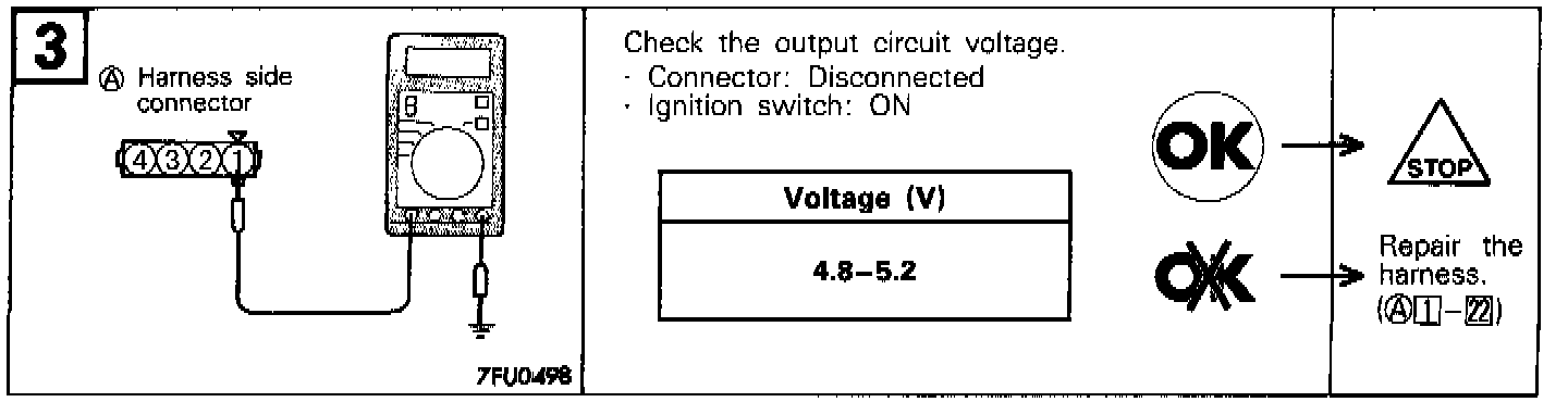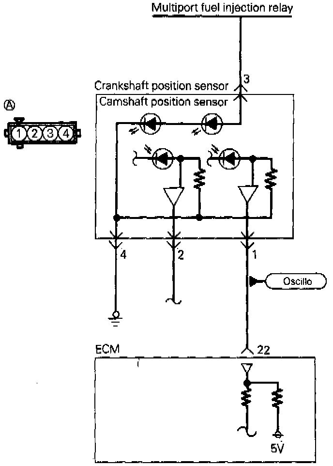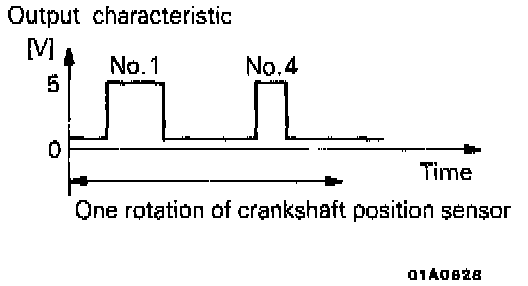 In case of a broken wire or short-circuit in the camshaft position sensor or improper contact in the connector, hard starting, unstable idle or intermittent idle will occur. However, if a wire is broken while the engine is running, it will not result in trouble.