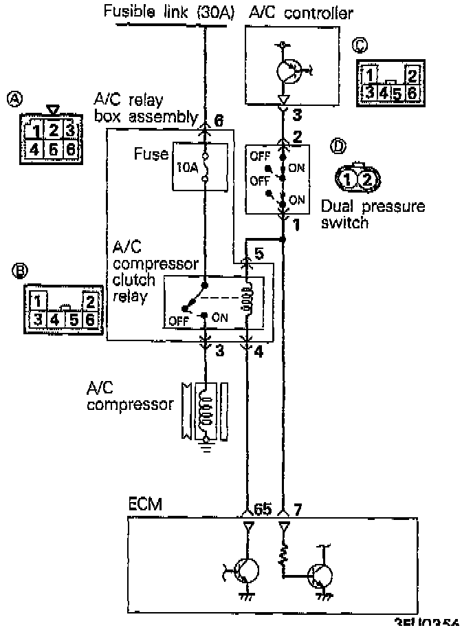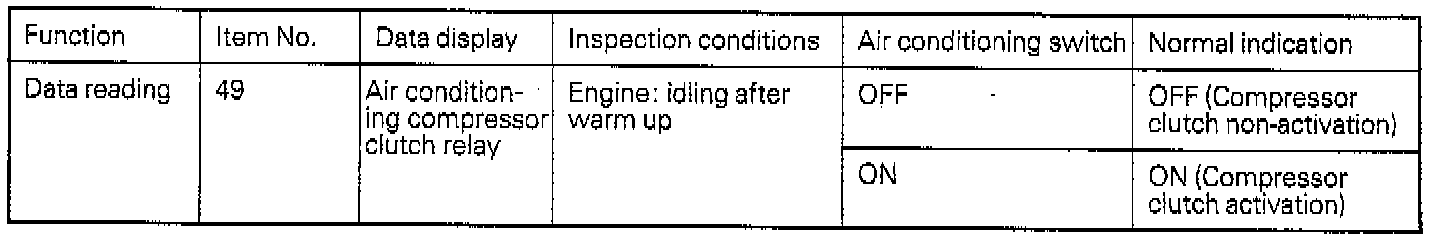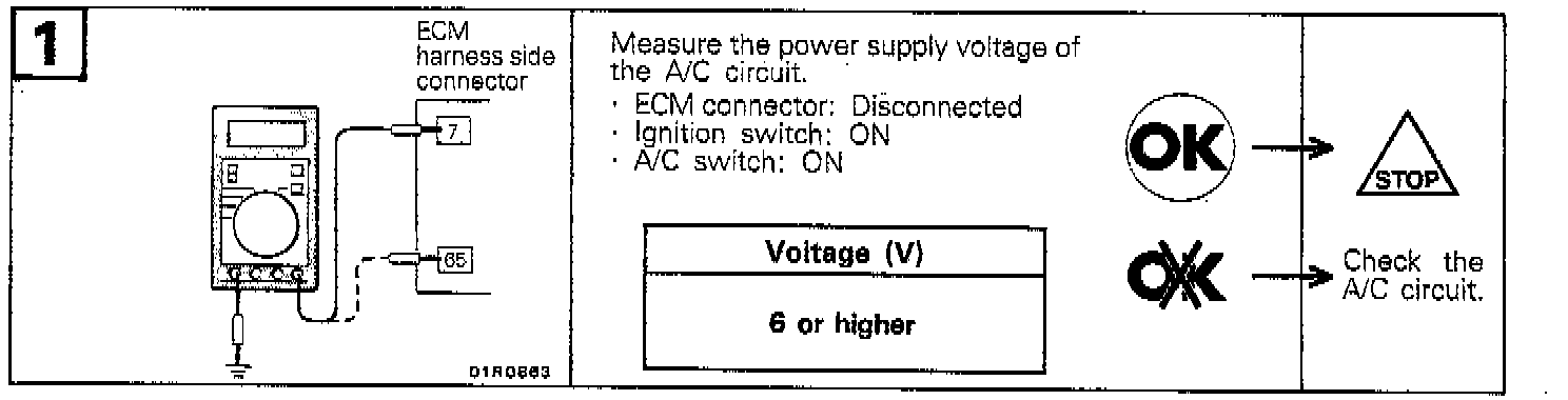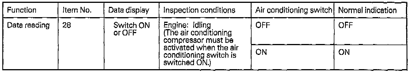 When the idle speed does not increase with the air conditioning or when the air conditioning compressor does not run, a short-circuit or broken wire may be present in the circuit related to the air conditioning.