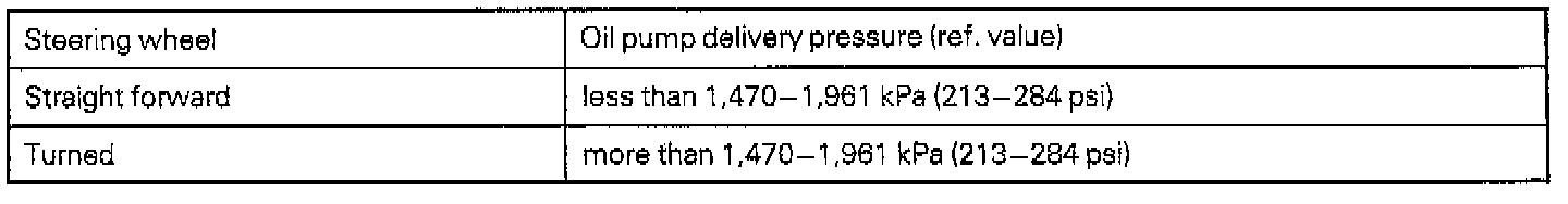 POWER STEERING PRESSURE CHART