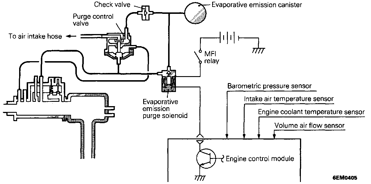 5. Disconnect the purge air hose from the air intake hose, and plug the air intake hose. Then, connect the hand vacuum pump to the purge air hose.