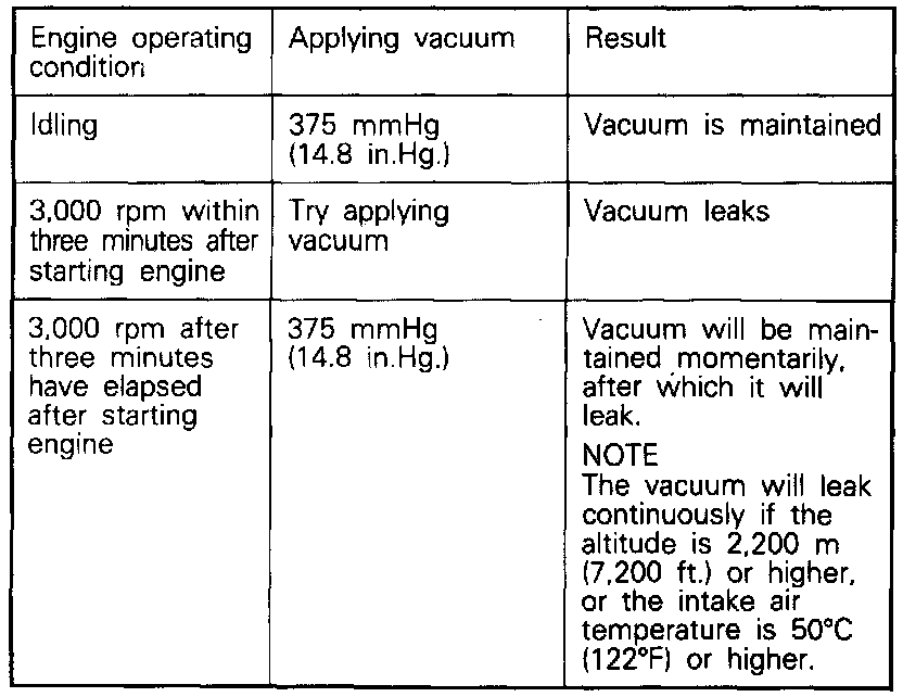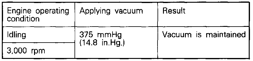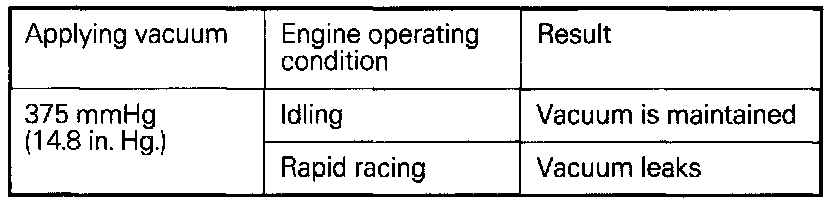 3. Under the engine conditions shown below, check by applying vacuum from a hand vacuum pump.