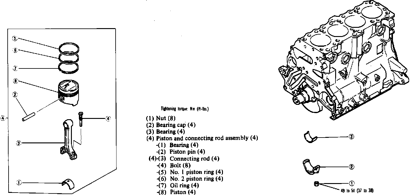 (2) Install piston rings with identification mark facing up, to the piston crown side.