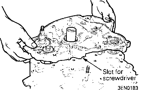 1. Position a suitable screwdriver between oil pan and cylinder block and slide along groove to remove.