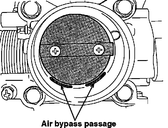 NOTE: Never allow cleaning solvent to flow into the bypass passage. Disconnect the air intake hose from the throttle body and inspect the throttle valve surface (for carbon deposits), by opening the valve.