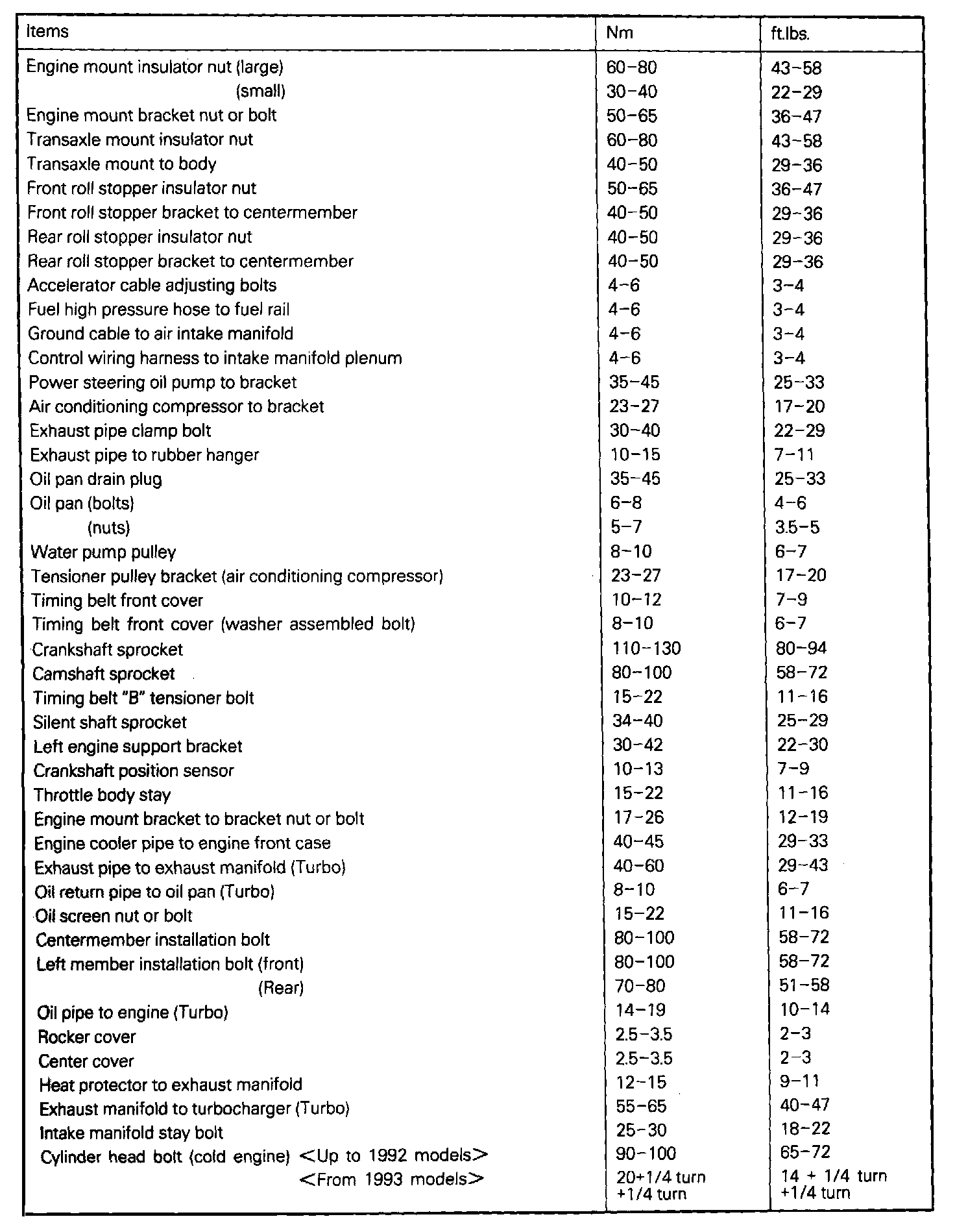 Torque Specifications
