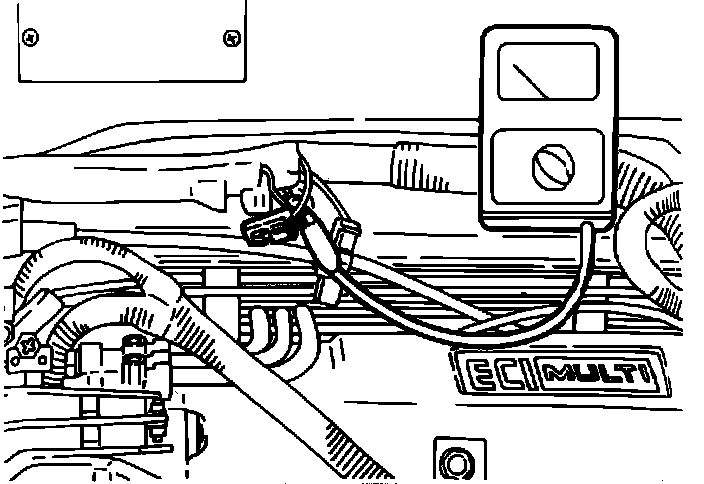 5. With the engine stopped, disconnect the ignition timing adjustment terminal, located in the engine compartment. Ground the terminal using a lead wire with alligator clips (Fig. 2).