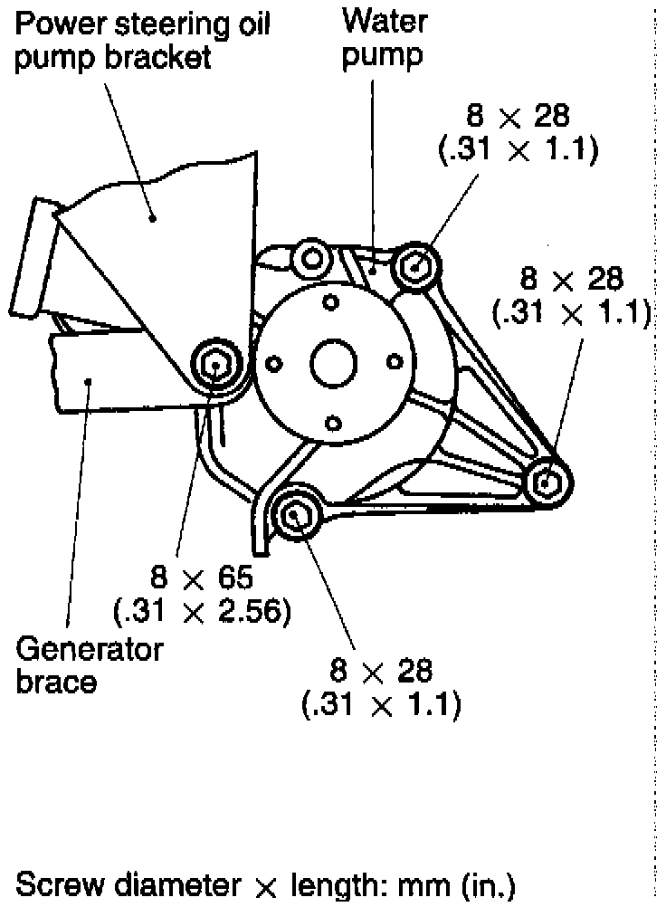 Fig. 19 Water Pump Bolt Lengths & Locations: