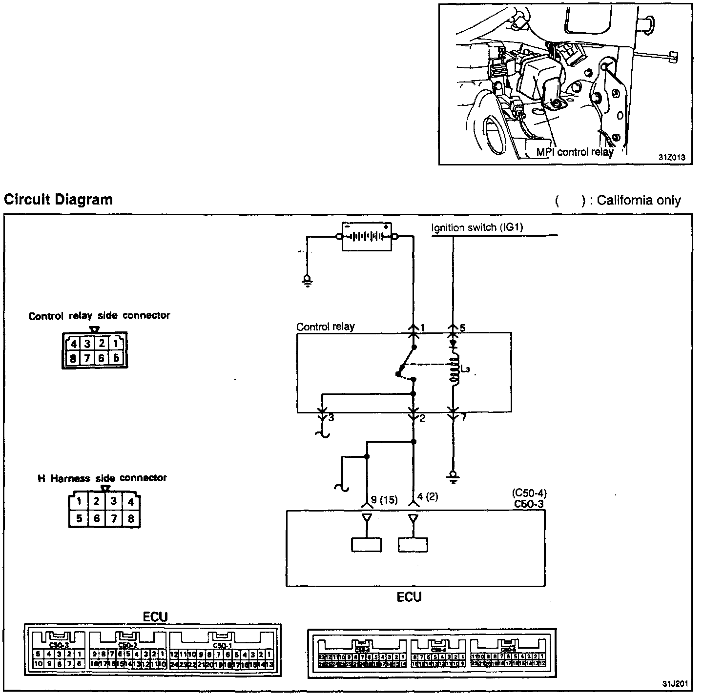 NOTE: Failure of the control relay could interrupt power supply to the fuel pump, injectors and ECU, resulting in start failure.