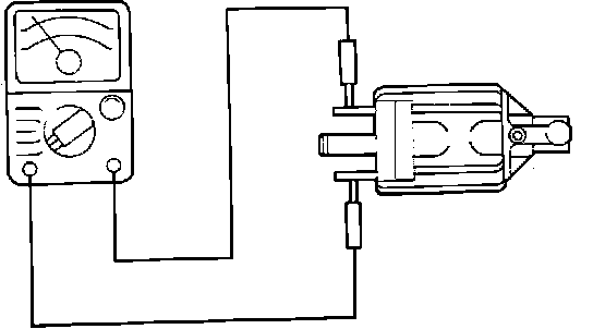 6. Measure the resistance between the two terminals of the solenoid valve, and verify that the resistance is between 36 and 44 ohms at 20 degrees C (68 degrees F).