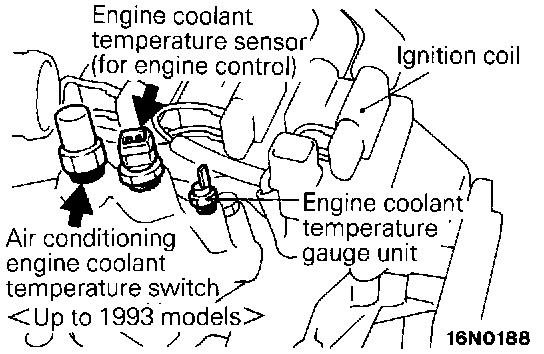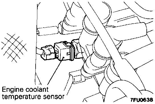 Engine coolant temperature sensor, located near the ignition coil, at the front of the engine.