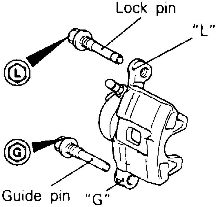 b. On models equipped with MR44V and MR46V calipers,install guide and lockpin so identification mark on pin matches mark on caliper body, Fig. 7.