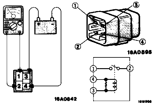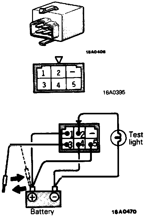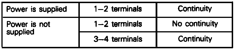 2. Connect battery power source to terminal 2. Check circuit between terminals with terminal 4 grounded.