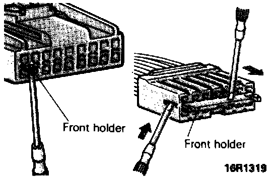 1. Insert screwdriver [1.4 mm (0.06 in.) width] as shown in the figure disengage front holder and remove it.