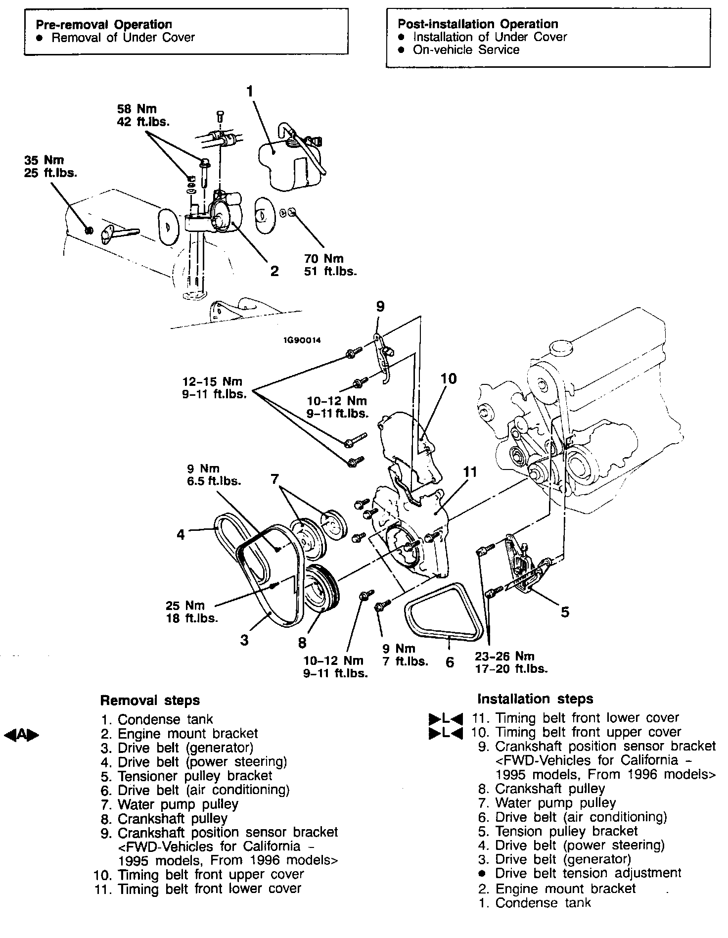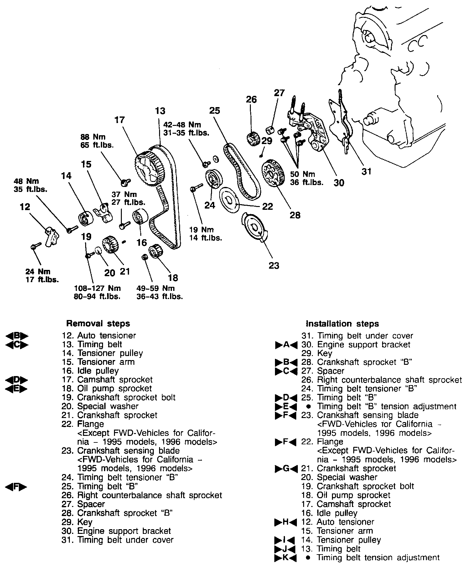 TIMING BELT (16 VALVE) REMOVAL AND INSTALLATION