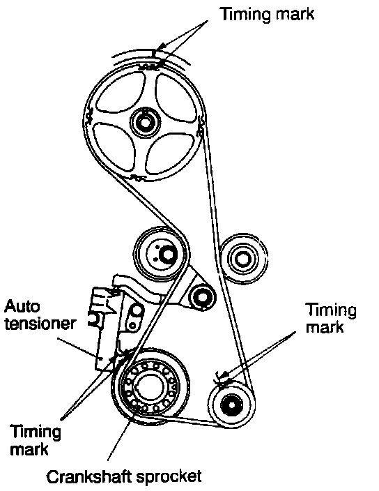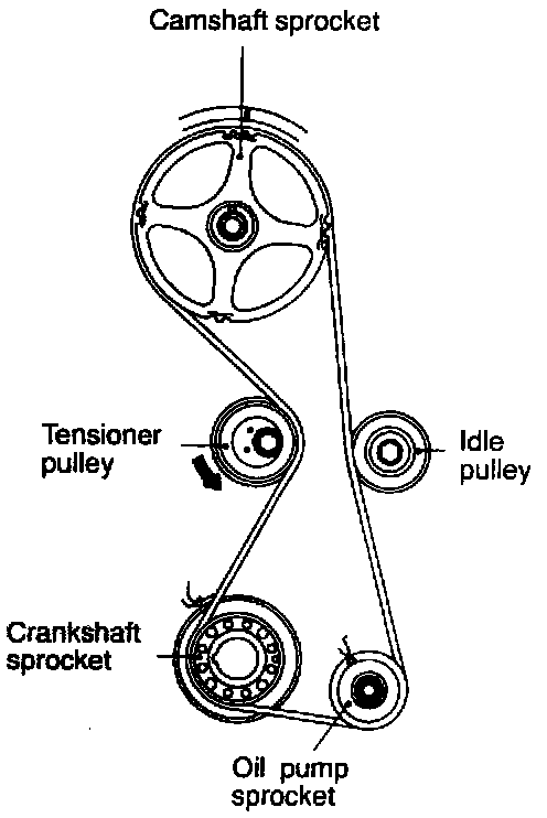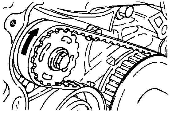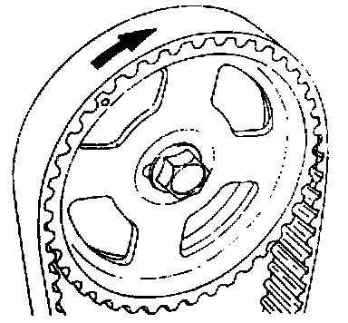 NOTE: Chalk an arrow mark indicating the rotation direction on the back of the timing belt for reassembly.