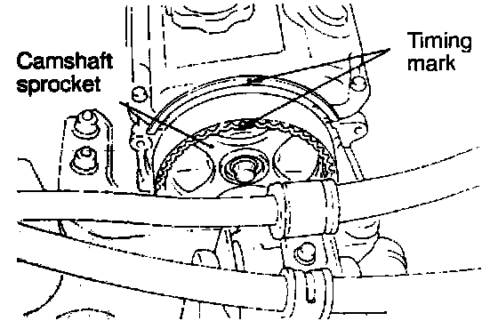 - Never rotate the crankshaft after removing the camshaft sprocket.