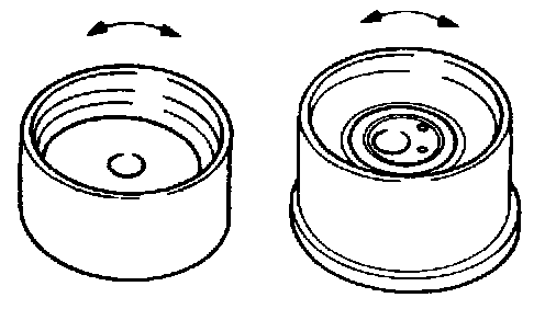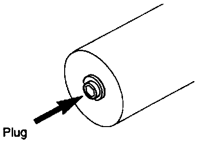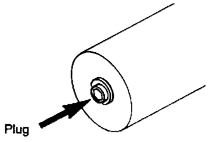 (1) Keep the auto tensioner level and clamp it in the vise with soft jaws. If the plug at the bottom of the auto tensioner protrudes, surround it with a plain washer as illustrated to prevent the plug from touching the vise (auto tensioner with plug).