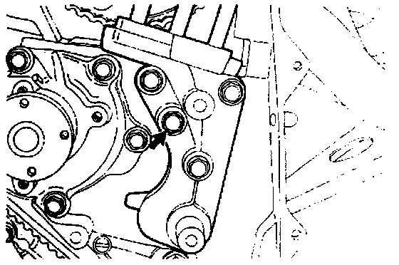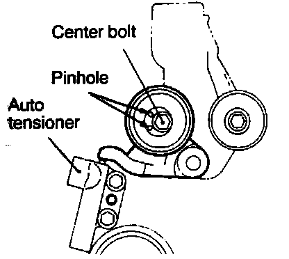 2. Locate the pinhole in the tensioner pulley shaft to the left of the center bolt. Then, tighten the center bolt finger-tight.