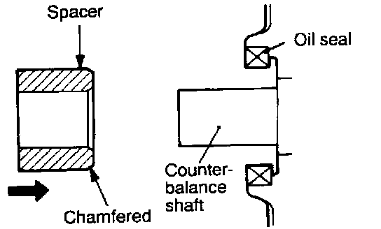 NOTE: If the spacer is installed adversely, the oil seal may be damaged, resulting in the oil leaks.