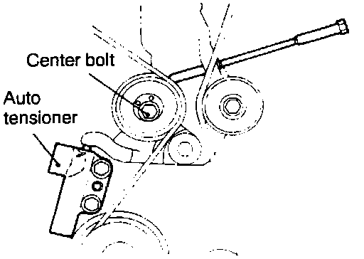 - Do not let the tensioner pulley shaft rotate with the bolt, otherwise the belt will become too tight.