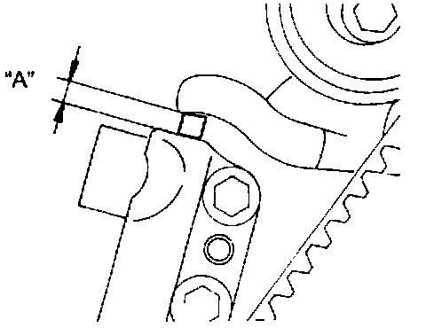 6. Rotate the crankshaft two complete turns clockwise and leave it as is for about 15 minutes. Then, measure the auto tensioner protrusion "A" (distance between the tensioner arm and auto tensioner body).