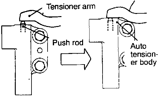 7. If the clearance between the tensioner arm and the auto tensioner body cannot be measured (when the engine is being mounted, etc.), the following procedures can be used to substitute for the ordinary method of measurement.