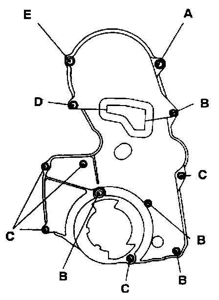 NOTE: The dimensions of the installation bolts for the timing belt covers depend on installation location. Do not confuse them.