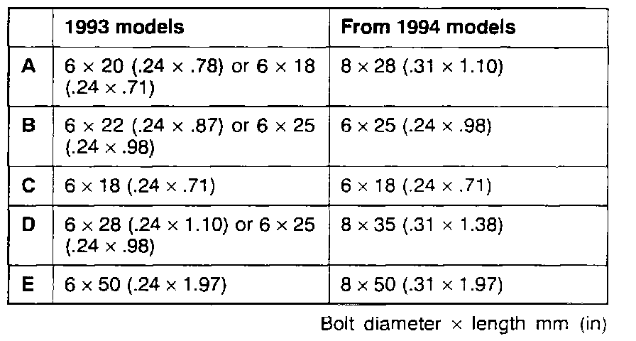 NOTE: As the bolts are integrated in the middle of 1993 model, two types of bolts are being established.