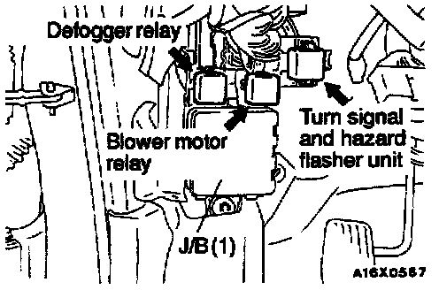 Blower Motor, Defogger Relay And Turn Signal And Hazard Flasher Unit: