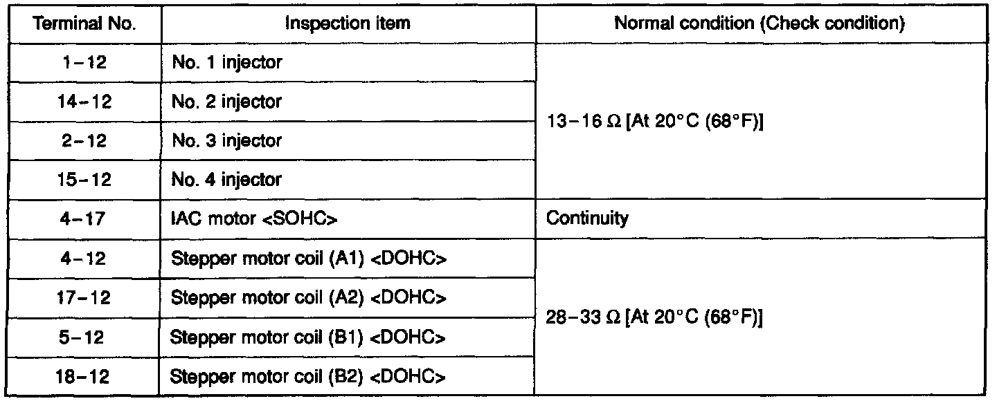 4. If the Ohmmeter shows any deviation from the normal condition, check the corresponding sensor, actuator and related electrical wiring, and then repair or replace.