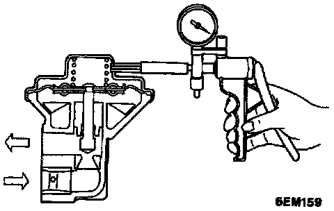 4. Apply a vacuum and check the passage of air by blowing through one side of the EGR passage. With 40 mmHg (1.6 in.Hg) or less vacuum applied to the EGR valve, air should not blow out of the passage.