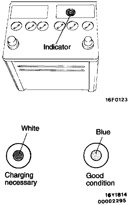 The battery contains a visual test indicator which gives blue signal when an adequate charge level exists, and white signal when charging is required.