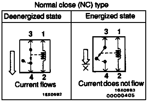When a normal close type relay as illustrated here is checked, there should be continuity between terminals (1) and (2) and between terminals 3 and 4 when the relay is deenergized, and the continuity should be lost between terminals 3 and 4.when the battery voltage is applied to the terminals 1 and 2. A relay can be checked in this manner and it cannot be determined if a relay is okay or faulty by checking its state only when it is deenergized (or energized).