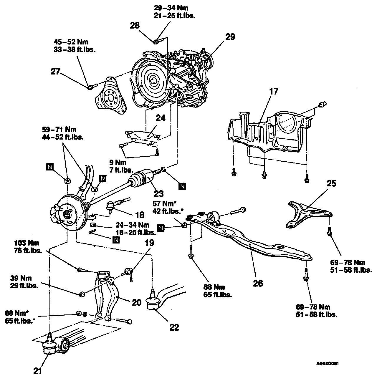 28. Transaxle assembly lower part coupling bolt
