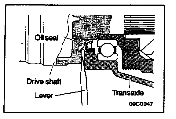(1) Insert a lever between the transaxle case and the drive shaft to remove the drive shaft.
