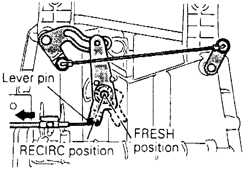4. Reverse procedure to install. Connect inside/outside air changeover damper cable as follows: