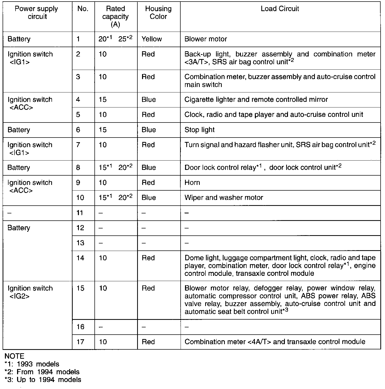 Multi-Purpose Fuses (In Junction Block)