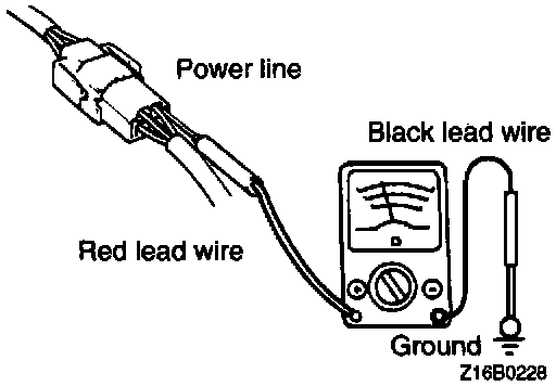A voltmeter is used to measure the circuit voltage. Normally, the positive (red lead) probe is applied to the point of voltage measurement and the negative (black lead) probe to the body ground.
