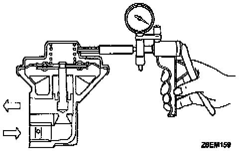 1. Remove the EGR valve and inspect for sticking, carbon deposits, etc. If found, clean with a suitable solvent so that the valve seats correctly.2. Connect a hand vacuum pump to the EGR valve.