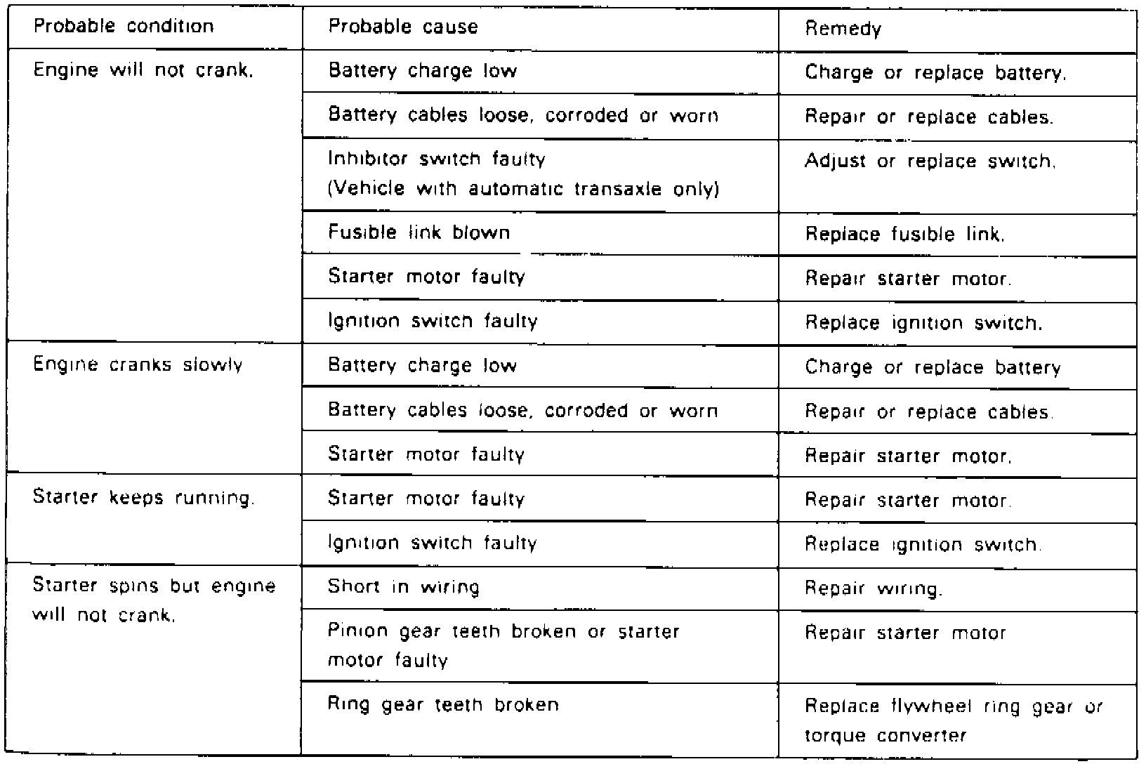 Fig. 4 Starting System Troubleshooting Chart: