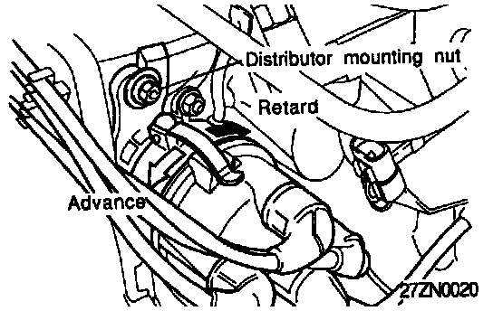 NOTE: The ignition timing will be advanced if the Distributor is turned to the left and retarded if it is turned to the right.